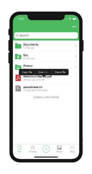 Nextcloud utilizza la crittografia SSL / TLS standard del settore per i dati in trasferimento. I dati a riposo nella memoria possono essere crittografati utilizzando una crittografia AES-256 di livello militare predefinita con gestione basata su server o personalizzata. Opzionalmente e su una base per cartella i dati possono essere crittografati end-to-end sul client con il server che assiste nella condivisione e nella gestione delle chiavi utilizzando un modello Zero-Knowledge. Perfetta integrazione e facilità d'uso con funzionalità chiave come le chiavi di ripristino offline, il controllo e il supporto HSM rendono le funzionalità di crittografia Nextcloud leader nel settore.